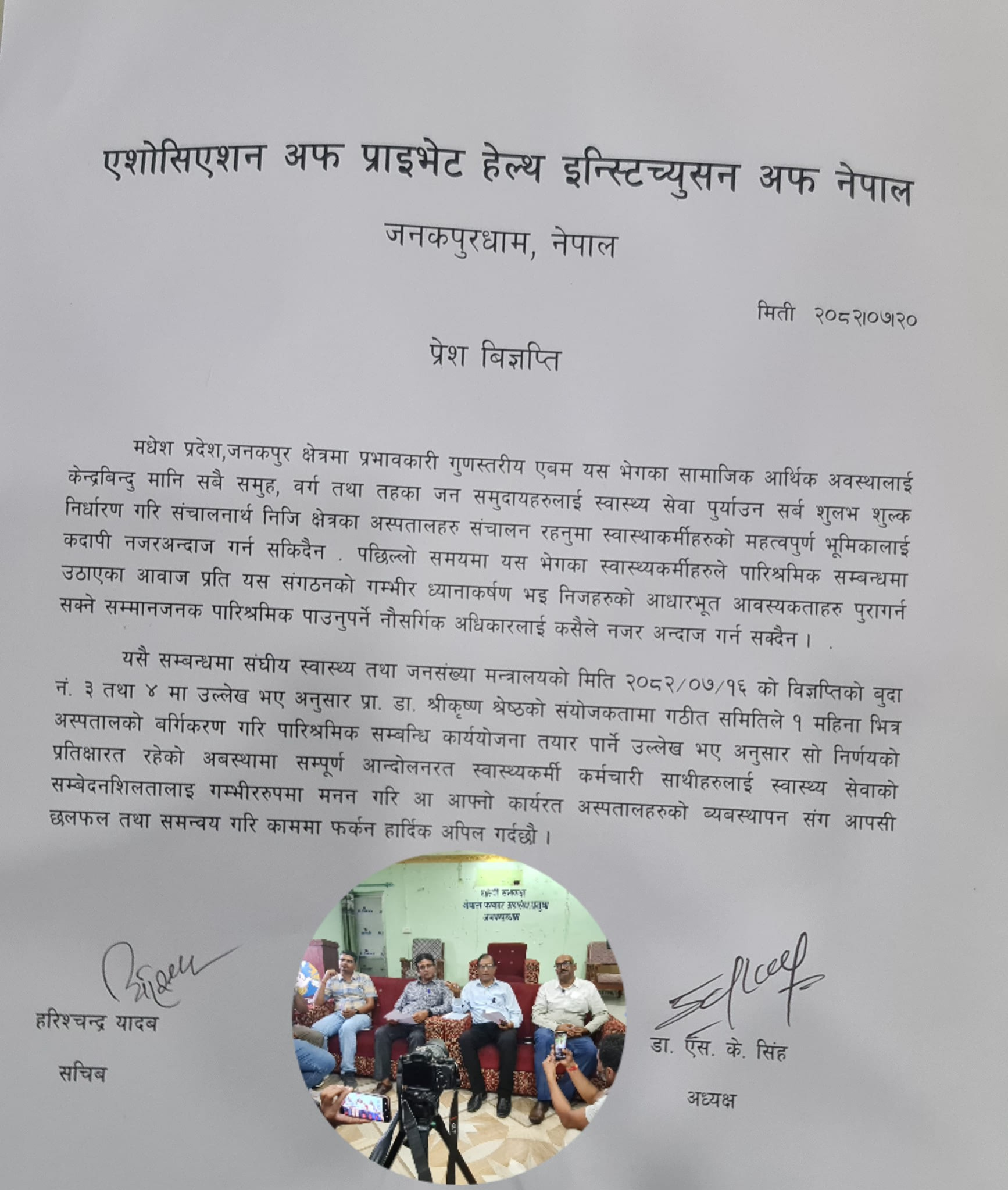 जनकपुरधाम, मंसिर १४ गते । जनकपुरधाम उपमहानगरपालिका–४ कटैया चौरीकी २७ वर्षीया रोशनी झा (मिश्रा) को रहस्यमय मृत्यु भएको घटनामा पीड..