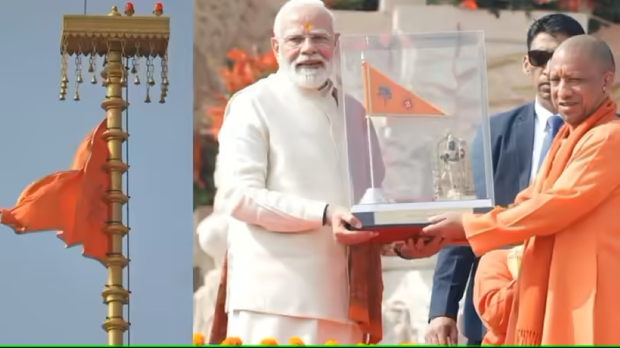 अयोध्यामा राम मन्दिरको शिखरमा प्रधानमन्त्री मोदीद्वारा धर्मध्वज फहराइँदै रामभक्तहरूलाई बधाई, 'सदियौँका घाउ भरिँदैछन्'